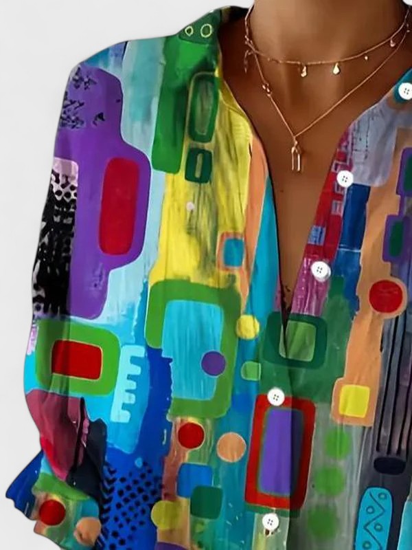 Verleihen Sie Ihrem Stil mit der Jessica | Elegante geometrische Musterbluse einen Hauch von Eleganz, wo modernes Design auf zeitlose Eleganz für jeden Anlass trifft.